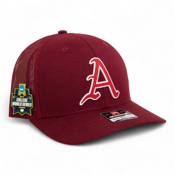 Arkansas Razorbacks Baseball Script A 2025 College World Series 3D Snapback Trucker Hat- Cardinal/ WhiteAlternative view of Arkansas Razorbacks Baseball Script A 2025 College World Series 3D Snapback Trucker Hat- Cardinal/ White
