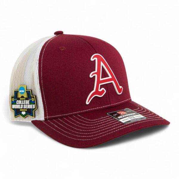Arkansas Razorbacks Baseball Script A 2025 College World Series 3D Snapback Trucker Hat- Cardinal/ White
