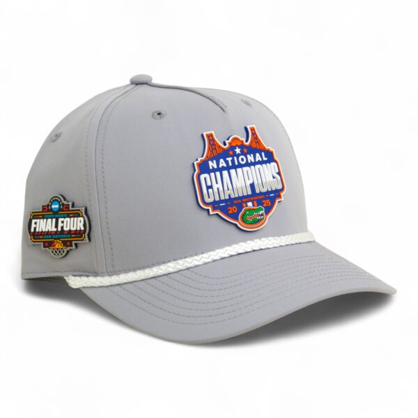 Florida Gators 2025 Final Four National Champions 3D Five Panel Classic Rope Hat- Grey/ White