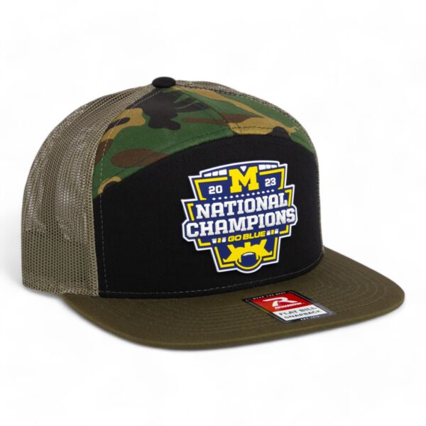 Michigan Wolverines College Football National Champions 3D Snapback Seven-Panel Flat Bill Trucker Hat- Black/ Camo/ LodenAlternative view of Michigan Wolverines College Football National Champions 3D Snapback Seven-Panel Flat Bill Trucker Hat- Black/ Camo/ Loden