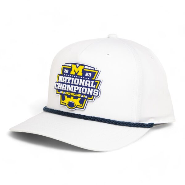 Michigan Wolverines College Football National Champions 3D Five Panel Classic Rope Hat- White/ NavyAlternative view of Michigan Wolverines College Football National Champions 3D Five Panel Classic Rope Hat- White/ Navy