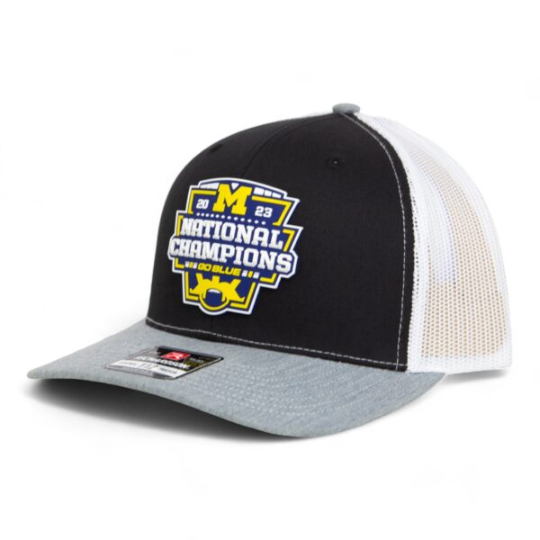 Michigan Wolverines College Football National Champions 3D Snapback Trucker Hat- Black/ White/ Heather GreyAlternative view of Michigan Wolverines College Football National Champions 3D Snapback Trucker Hat- Black/ White/ Heather Grey