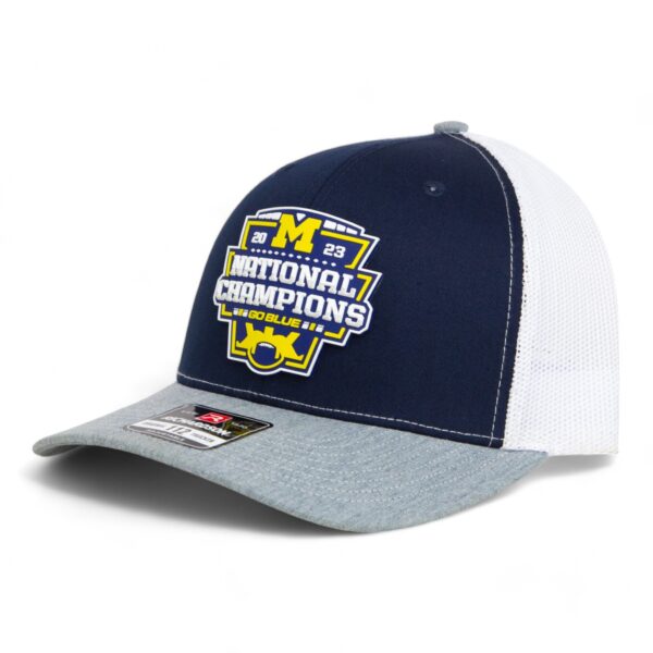 Michigan Wolverines College Football National Champions 3D Snapback Trucker Hat- Navy/ White/ Heather GreyAlternative view of Michigan Wolverines College Football National Champions 3D Snapback Trucker Hat- Navy/ White/ Heather Grey