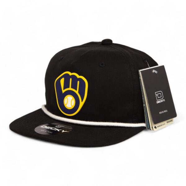 Milwaukee Brewers 3D Five Panel Classic Rope Hat- Black/ WhiteAlternative view of Milwaukee Brewers 3D Five Panel Classic Rope Hat- Black/ White