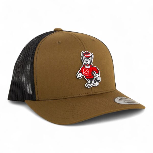 NC State Wolfpack Strutting Wolf 3D YP Snapback Trucker Hat- Coyote Brown/ BlackAlternative view of NC State Wolfpack Strutting Wolf 3D YP Snapback Trucker Hat- Coyote Brown/ Black