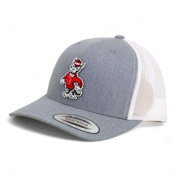 NC State Wolfpack Strutting Wolf 3D YP Snapback Trucker Hat- Heather Grey/ WhiteAlternative view of NC State Wolfpack Strutting Wolf 3D YP Snapback Trucker Hat- Heather Grey/ White