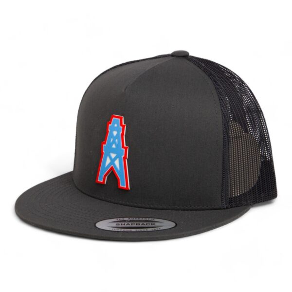 Houston Oilers 3D YP Snapback Flat Bill Trucker Hat- Charcoal/ BlackAlternative view of Houston Oilers 3D YP Snapback Flat Bill Trucker Hat- Charcoal/ Black