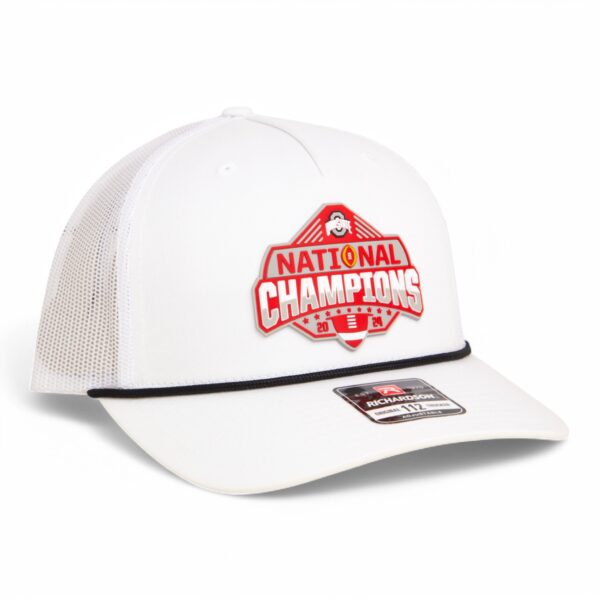 Ohio State Buckeyes 2024 CFP National Champions 3D Snapback Trucker Rope Hat- White/ Black